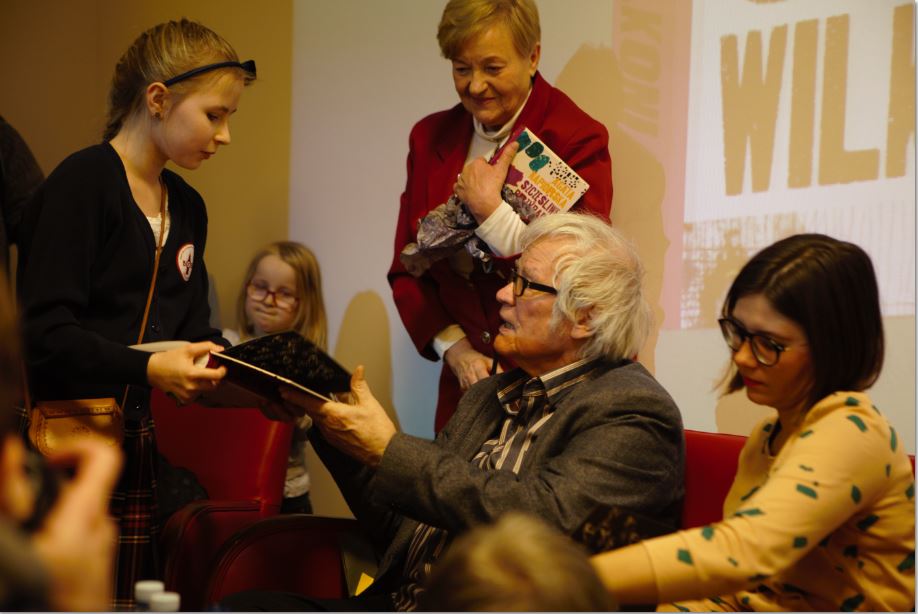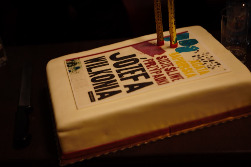 Dziś w słynnej warszawskiej bibliotece przy ulicy Koszykowej odbyła się uroczysta promocja książki Agaty Napiórskiej Szczęśliwe przypadki Józefa Wilkonia. Na spotkaniu z czytelnikami pojawili się oboje, bohater wywiadu rzeki i autorka. Rozmowę z Józefem Wilkoniem i Agatą Napiórską prowadziły Sylwia Chutnik i Karolina Sulej. Podczas wieczoru padło wiele ciekawych pytań, a wśród zaproszonych gości pojawili się znani artyści, między innymi Bogdan Butenko, który gratulował bohaterowi i autorce książki. Wieczór uświetnił urodzinowy tort, który prezentujemy w naszej galerii. Artysta i autorka złożyli wiele autografów. Pełna sala dowiodła wielkiego zainteresowania twórczością malarza, ilustratora, rzeźbiarza i historyka sztuki. Dowiedzieliśmy się między innymi jak żyć, aby być szczęśliwym i jak ważna jest w życiu czułość wobec świata i innych ludzi. Dziękujemy bohaterom wieczoru, ogranizatorowi i gościom, bez których nie byłoby tego spotkania.
