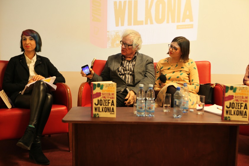 Dziś w słynnej warszawskiej bibliotece przy ulicy Koszykowej odbyła się uroczysta promocja książki Agaty Napiórskiej Szczęśliwe przypadki Józefa Wilkonia. Na spotkaniu z czytelnikami pojawili się oboje, bohater wywiadu rzeki i autorka. Rozmowę z Józefem Wilkoniem i Agatą Napiórską prowadziły Sylwia Chutnik i Karolina Sulej. Podczas wieczoru padło wiele ciekawych pytań, a wśród zaproszonych gości pojawili się znani artyści, między innymi Bogdan Butenko, który gratulował bohaterowi i autorce książki. Wieczór uświetnił urodzinowy tort, który prezentujemy w naszej galerii. Artysta i autorka złożyli wiele autografów. Pełna sala dowiodła wielkiego zainteresowania twórczością malarza, ilustratora, rzeźbiarza i historyka sztuki. Dowiedzieliśmy się między innymi jak żyć, aby być szczęśliwym i jak ważna jest w życiu czułość wobec świata i innych ludzi. Dziękujemy bohaterom wieczoru, ogranizatorowi i gościom, bez których nie byłoby tego spotkania.